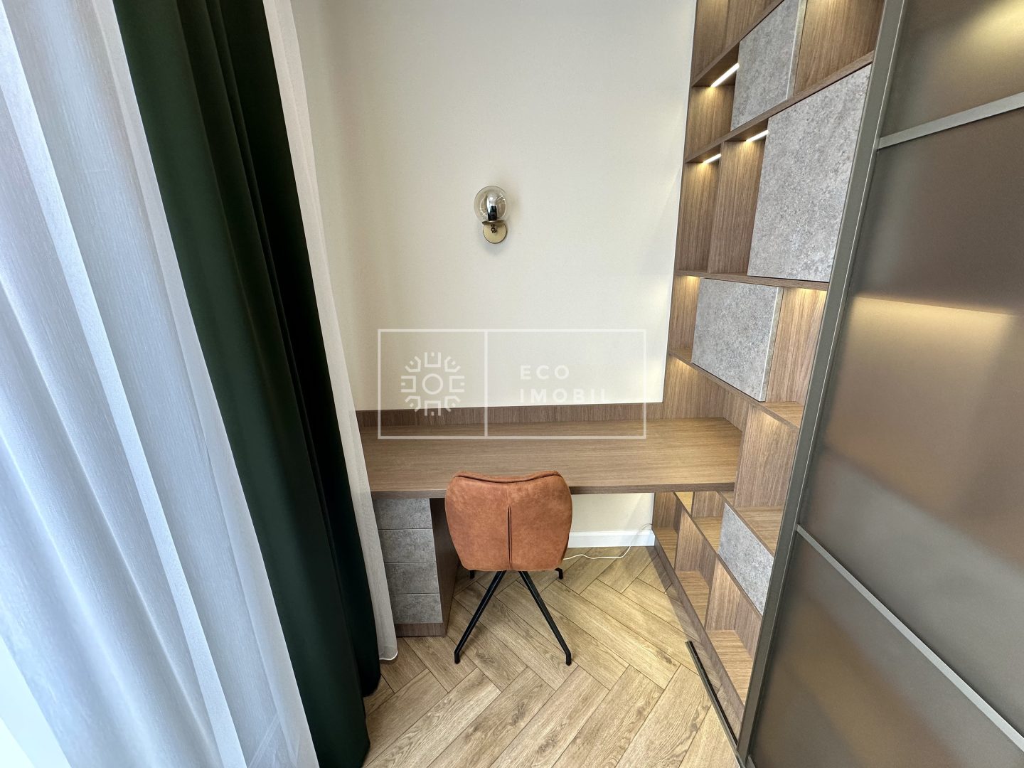 Compartimentare: 1 dormitor, cabinet de lucru, bucătărie cu living, antreu, bloc sanitar.