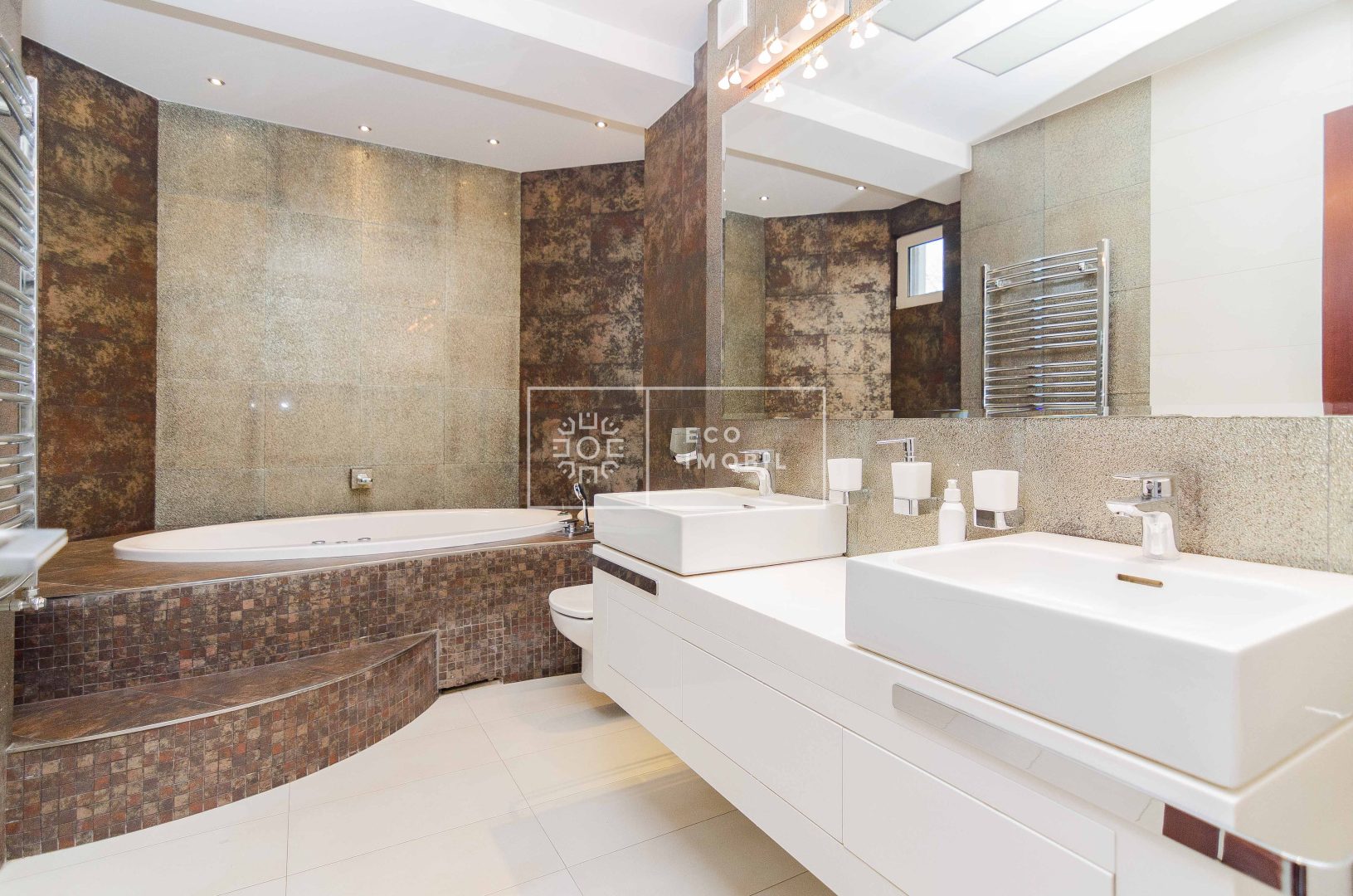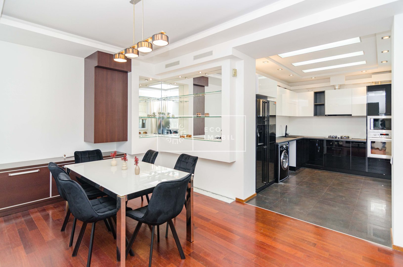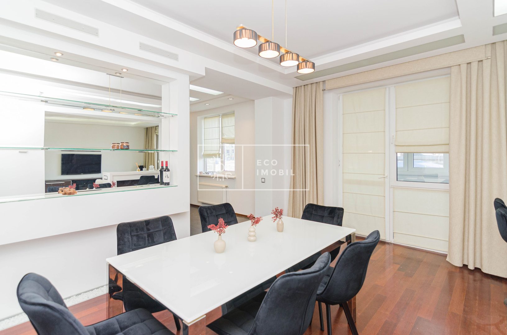 Compartimentare: 2 dormitoare, bucătărie, living spațios, balcon, garderobă, 2 blocuri sanitare, unul cu jacuzzi unul cu cabina de duș.