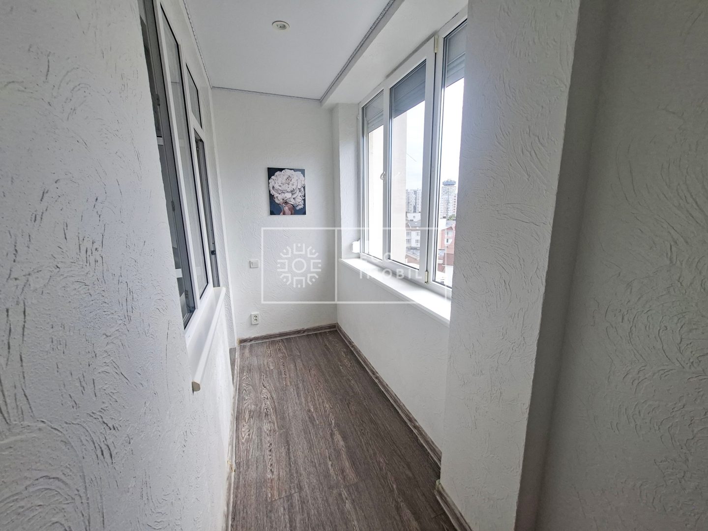 2 спальни, просторная кухня, широкий холл, санузел, 2 балкона, один из которых обустроен как зона отдыха и кабинет.